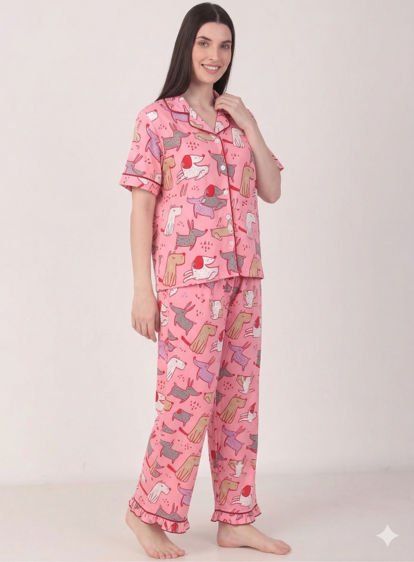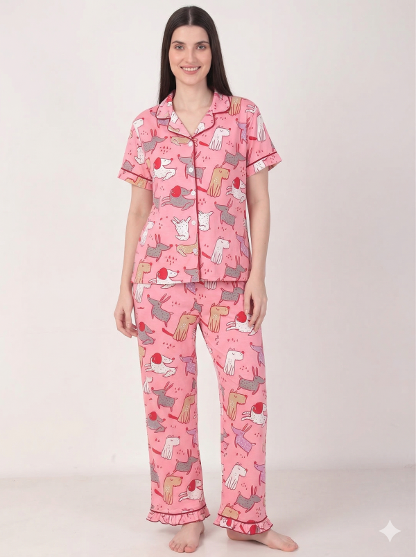 Slip into comfort and cuteness with this playful cotton night set, designed for effortless lounging and peaceful sleep. Crafted from soft, breathable cotton, this set keeps you cool and comfortable all night long.