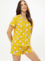Crafted from breathable cotton fabric, it includes a button-down shirt and matching shorts, offering a relaxed yet stylish fit.